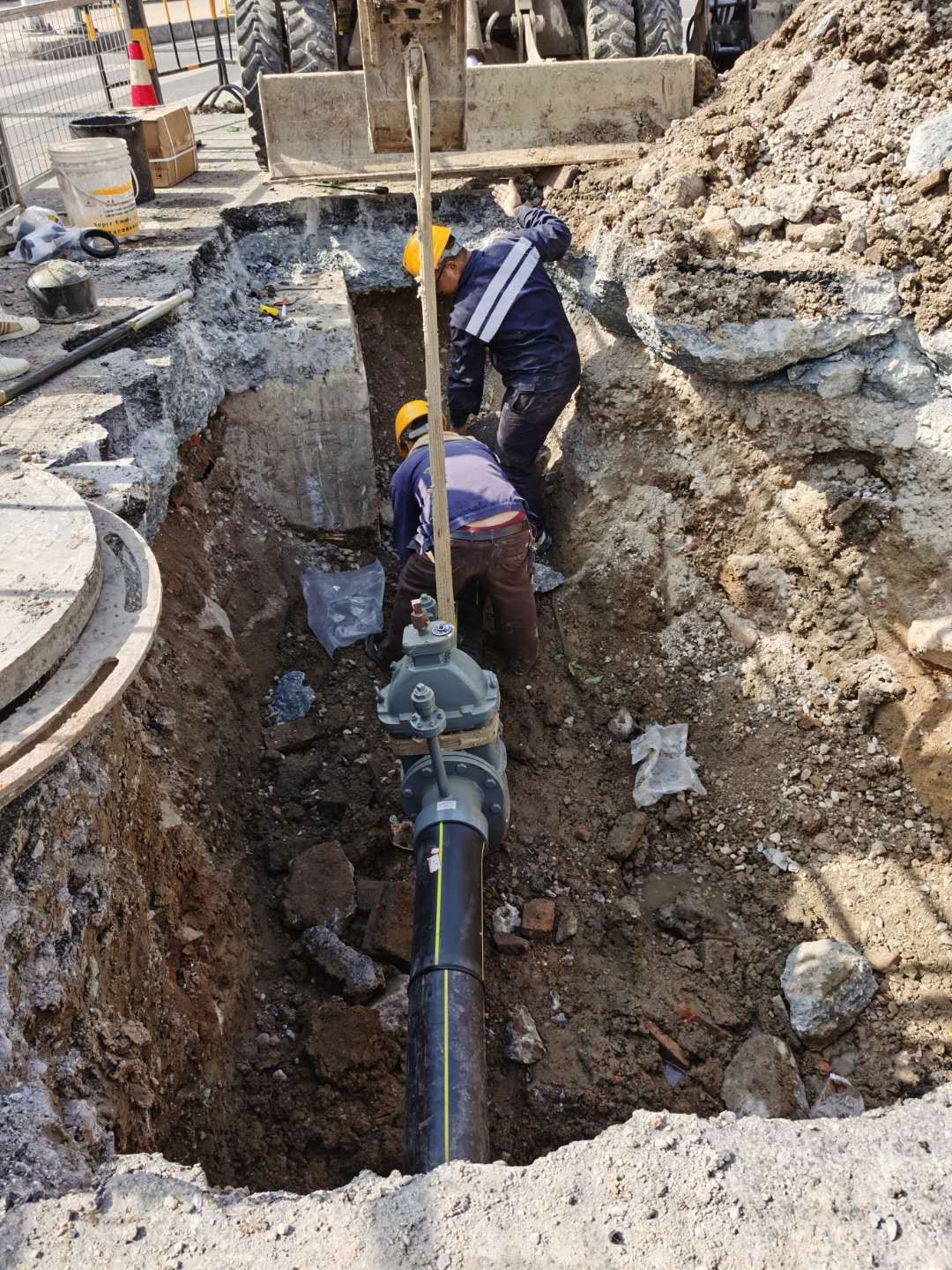 2020年10月23日下午16时,清塘路(广济路-虎阜路)中压燃气管道改造工程第一阶段碰通顺利完成。
