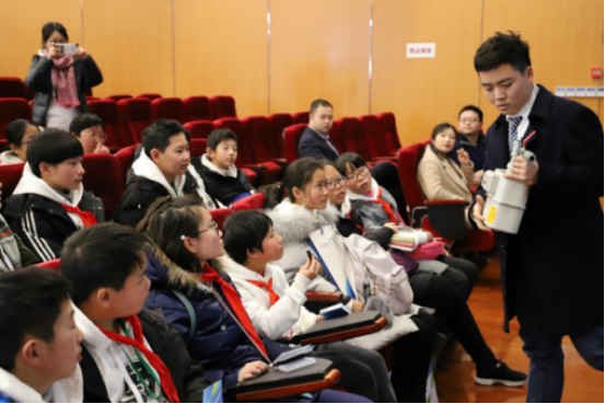 接下来要上课啦!在燃气大楼的报告厅里,讲解员向学生们详细介绍了燃气特点及使用注意点等安全知识,幽默的讲解引来一片欢声笑语。